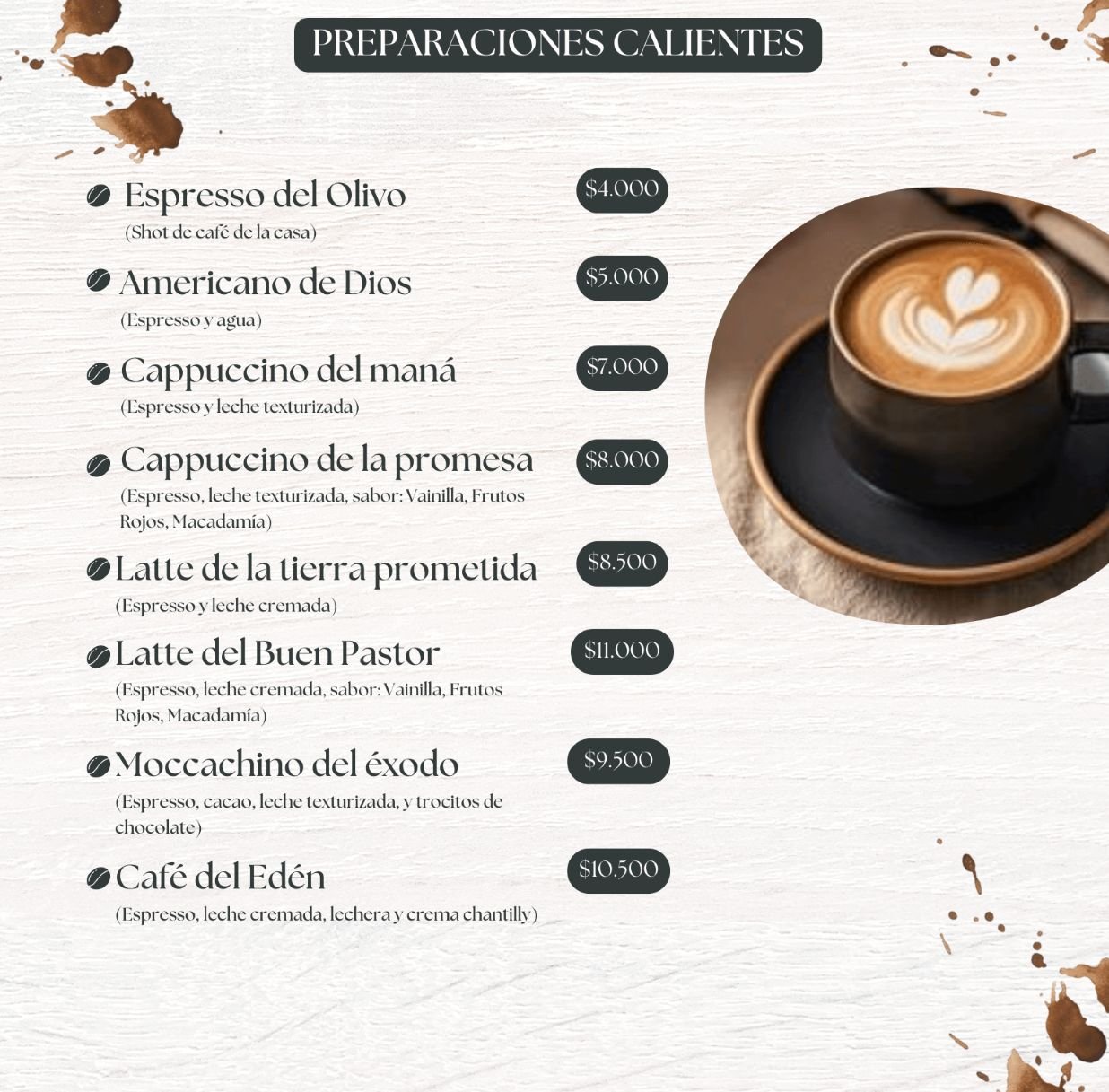 Brindar un espacio hogareño y acogedor donde jóvenes y personas de todas las edades puedan disfrutar de un buen café mientras encuentran un ambiente de oración, música cristiana y acompañamiento espiritual. Nuestro propósito es compartir el amor de Jesús a través del servicio, la cercanía y la amistad, creando momentos significativos que acerquen a cada visitante a una experiencia de fe y esperanza.